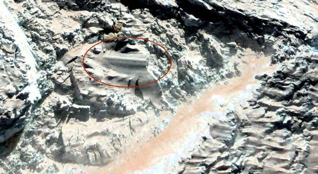 In addition, there is another strange brownish object located above the large anomaly which is very similar to an old settlement or entrance.