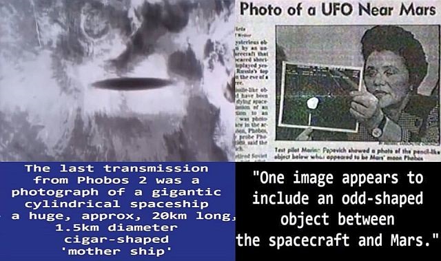 According to Boris Bolitsky, science correspondent for Radio Moscow, just before radio contact was lost with Phobos 2 several unusual images were radioed back to Earth, described by the Russian as "Quite Remarkable Features".