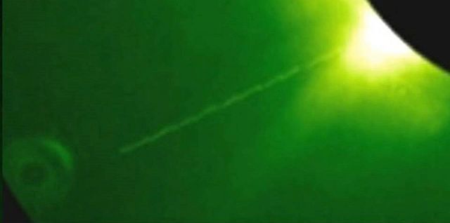 Another interesting anomaly caught near the Sun, which appears to show a large ring shaped UFO, firing a powerful beam of light into the suns corona.